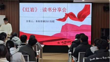 活动伊始,主持人向大家梳理了本次活动所要分享的内容,点明此次读书活动旨在结合本月主题团日活动,让红色文化从书籍中“走出来”,成为激励大家坚定理想、勇担使命的精神动力。在分享环节,同学们怀着对革命先辈的崇敬之情踊跃登台,将《红星照耀中国》《红岩》《红色家书》中的感悟与思考娓娓道来。有同学提到,读《红星照耀中国》时,斯诺笔下陕北窑洞里油灯下的身影、红军战士嚼着草根仍高唱战歌的场景,让他真切触摸到“信仰”的温度;谈及《红岩》,另一位同学读懂了何为“为信仰献身”,也更明白了和平生活的来之不易;而《红色家书》的字句更让人热泪盈眶,让同学们在字里行间愈发坚定了传承红色基因、筑牢信仰之基的决心。随后,主持人随机邀请同学提问,围绕 “如何在当代生活中品读与传承书籍中的红色价值” 展开互动。同学们就《红星照耀中国》里的长征精神、《红岩》中的革命气节等内容展开谈论,既有贴近日常的阅读习惯讨论,也有聚焦红色文化当代传播途径的探讨。