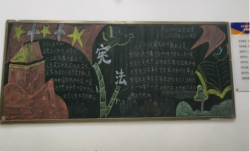 活动同步开展宪法主题黑板报创作环节,同学们以“宪法与青年责任”为核心,结合宪法条文要点、法治宣传标语等内容,用图文结合的形式呈现宪法知识框架,既梳理了宪法的核心内容,也通过排版、绘画的过程,将法治理念转化为具象的视觉表达,营造了浓厚的宪法学习氛围。